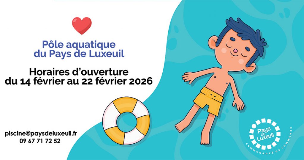 Samedi 14 février de 9h à 12h et de 13h30 à 17h30 : ouverture officielle du Pôle aquatique du Pays de Luxeuil pour votre première baignade et pour vous inscrire aux activités.