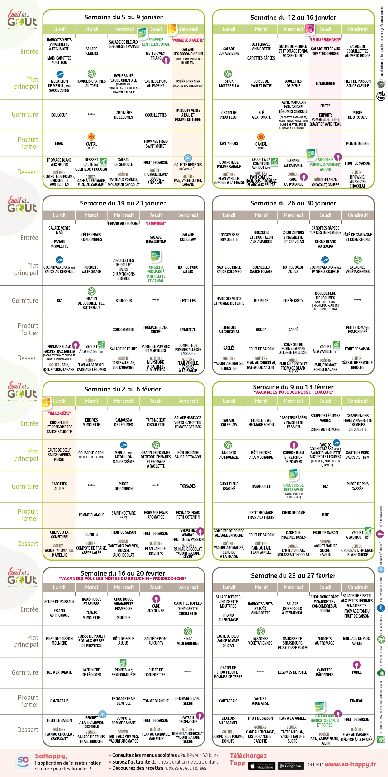 Menus de la cuisine centrale