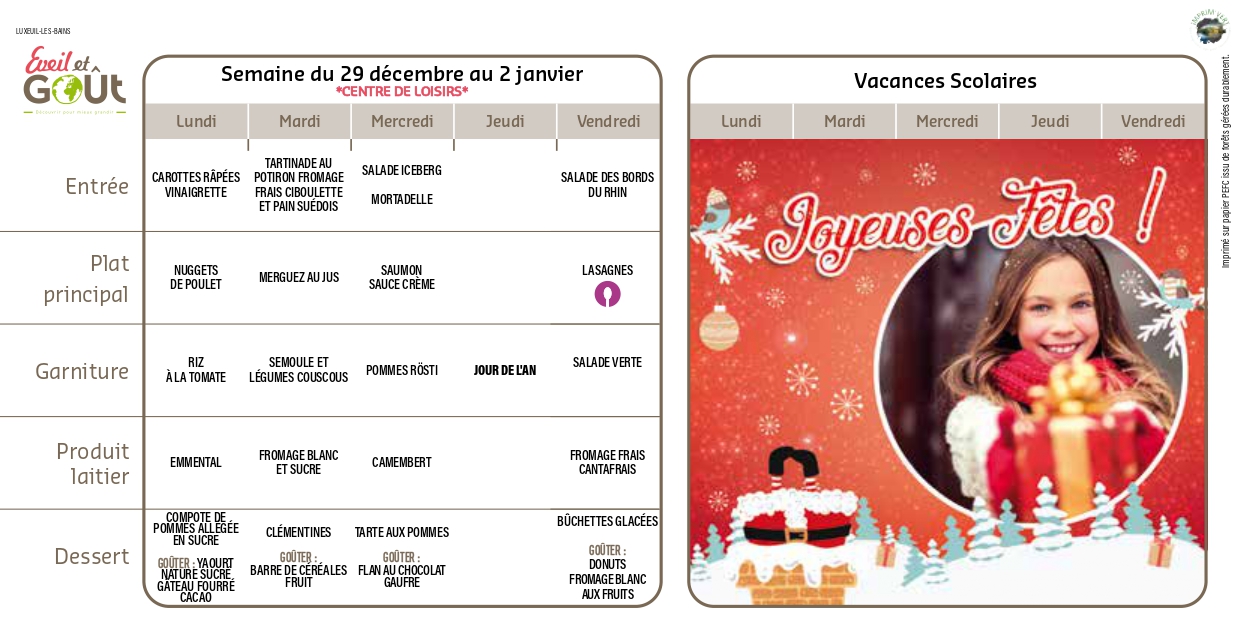 La cuisine centrale de la Communauté de communes du Pays de Luxeuil alimente un restaurant scolaire sur site et 8 structures (crèches intercommunales La Mominette et la Poussinière, accueils de loisirs de Froideconche, St-Sauveur, Breuches-lès-luxeuil, Raddon-et-Chapendu et Sainte-Marie-en-Chanois et la résidence pour personnes du 3ème âge Les Barèges à Luxeuil-Les-Bains). Les repas préparés sur place par une équipe dynamique et passionnée font la part belle aux produits locaux qui représentent 32% de la part globale d’achat. Chaque année, 85 000 repas sont préparés dont 14 000 servis à la cantine de la cuisine centrale.