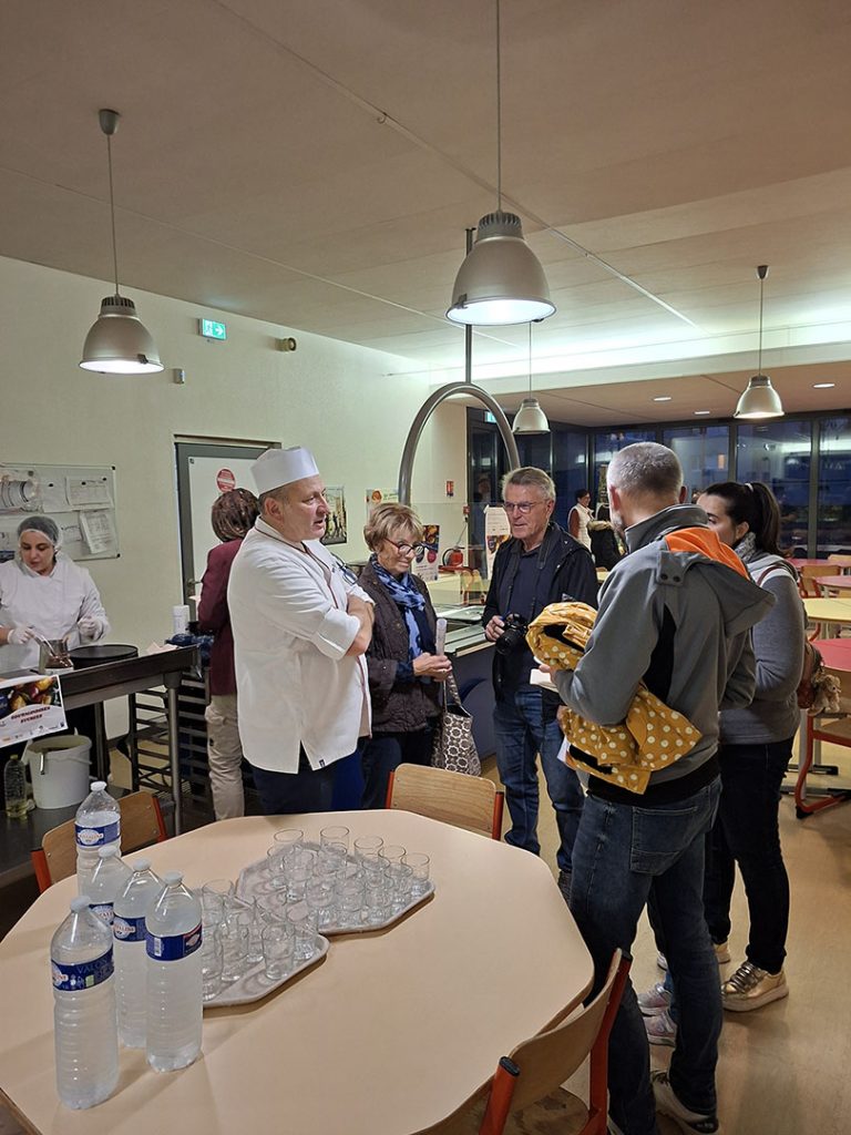 Les participants ont échangé avec les professionnels sur l’approvisionnement local, la place du frais , l’organisation et les processus de préparation quotidienne, la sécurité alimentaire mais surtout la passion du goût.